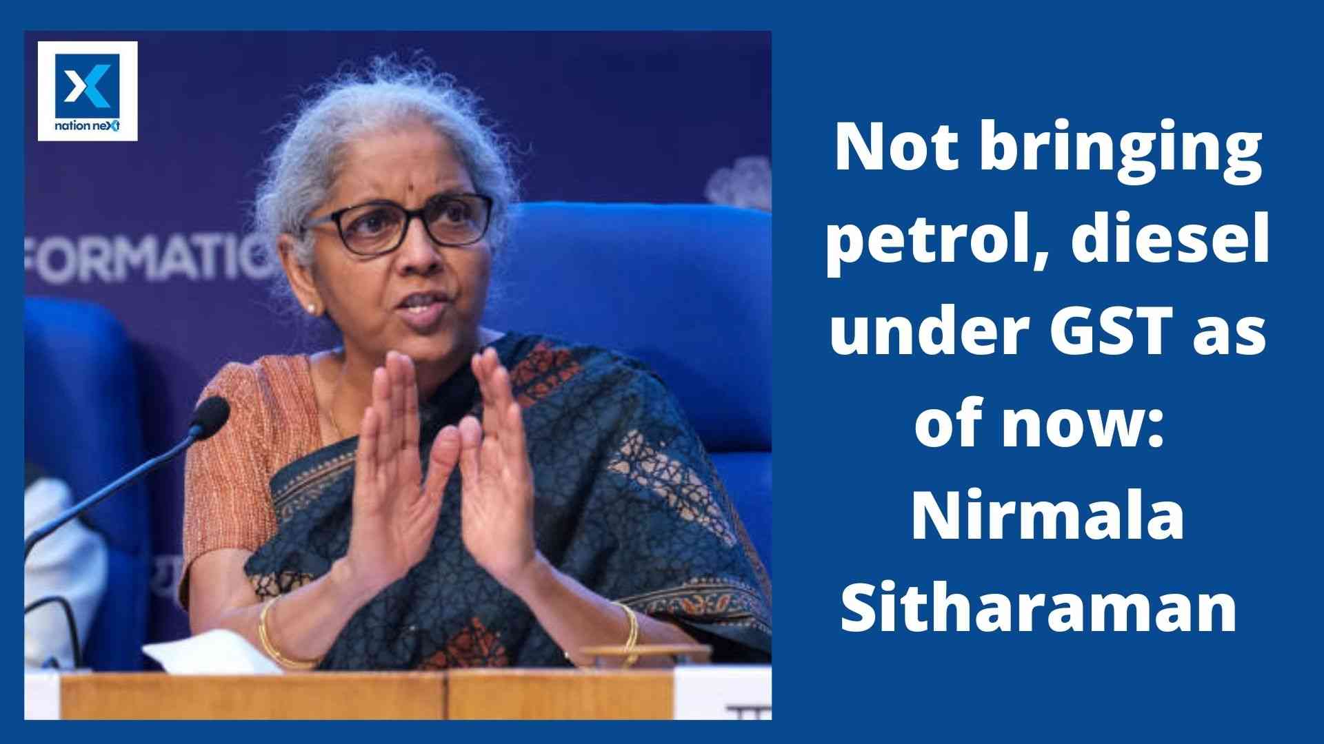 Not bringing petrol, diesel under GST as of now: Nirmala Sitharaman